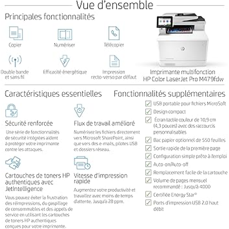 - ENHANCED ENERGY EFFICIENCY – Designed with the environment in mind, the HP Color LaserJet Pro MFP M479fdw saves up to 18% energy over prior products, with technologies that help reduce paper waste